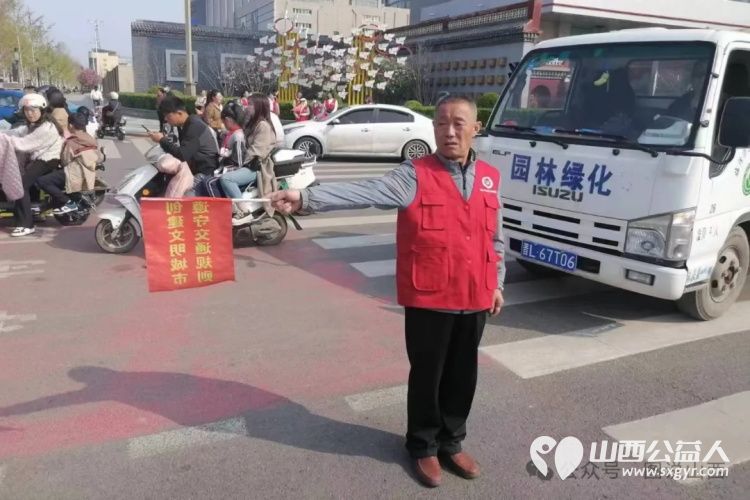 临汾市文明交通志愿者协会清明假日协助交警维护城市交通