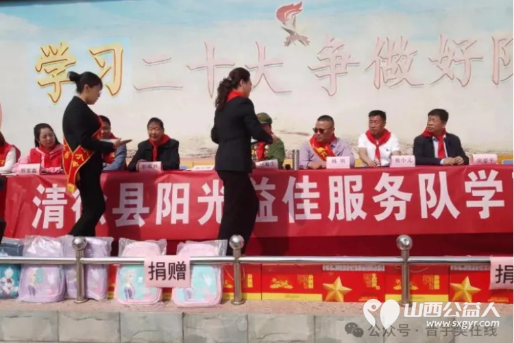全国道德模范提名奖赵海生以及清徐阳光益佳服务队和山西省晋绥边区历史文化研究会莅临忻州市康乐小学做雷锋故事演讲以及爱心捐赠活动