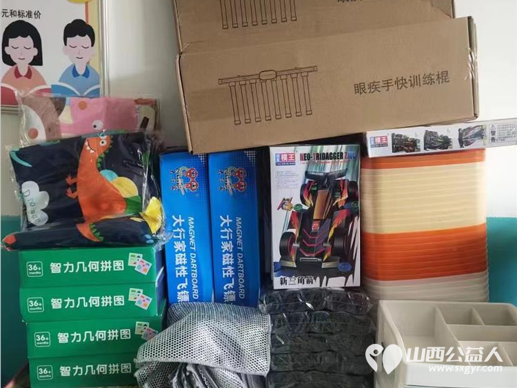 感谢山西鑫乾源通绩效管理有限公司捐赠给灵星孤独症孩子们娃哈哈AD钙奶沙琪玛等饮食…感谢聚光读书会为太原市灵星社区服务中心心青年捐赠卫生纸等生活物资