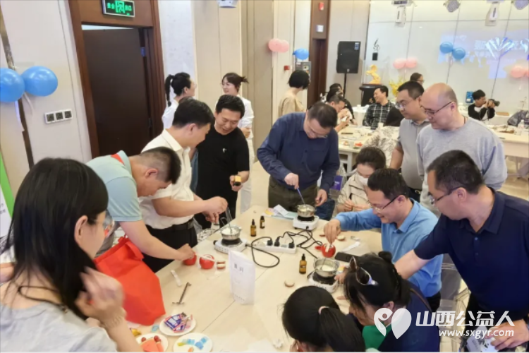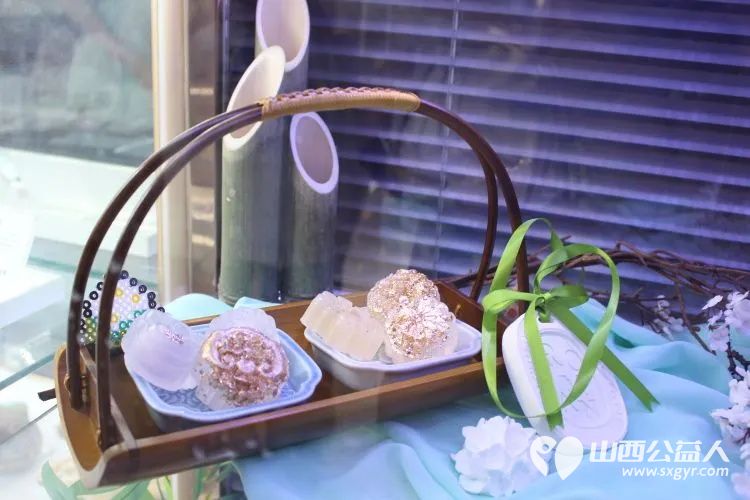 活动现场,学生代表在尚韵珠宝专门为特教学生作品设置的展柜前用心讲解自制的刺绣香包、石膏香薰、香皂以及香薰蜡烛的用途及制作方法,并现场展示了制作过程。