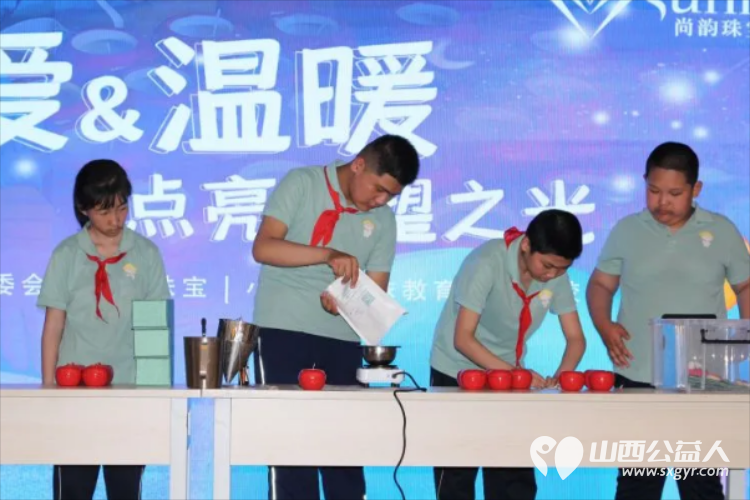 为持续开展好市委会“助学启智工程”,帮助特教学校“来自星星的孩子”从单一的校园环境走向社会,4月27日下午,民建太原市委会携手会员企业尚韵珠宝与太原市小店区特殊教育中心学校联合开展了“传递爱与温暖 点亮希望之光”融合教育实践活动。