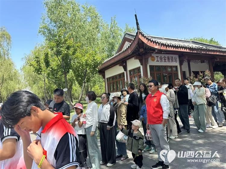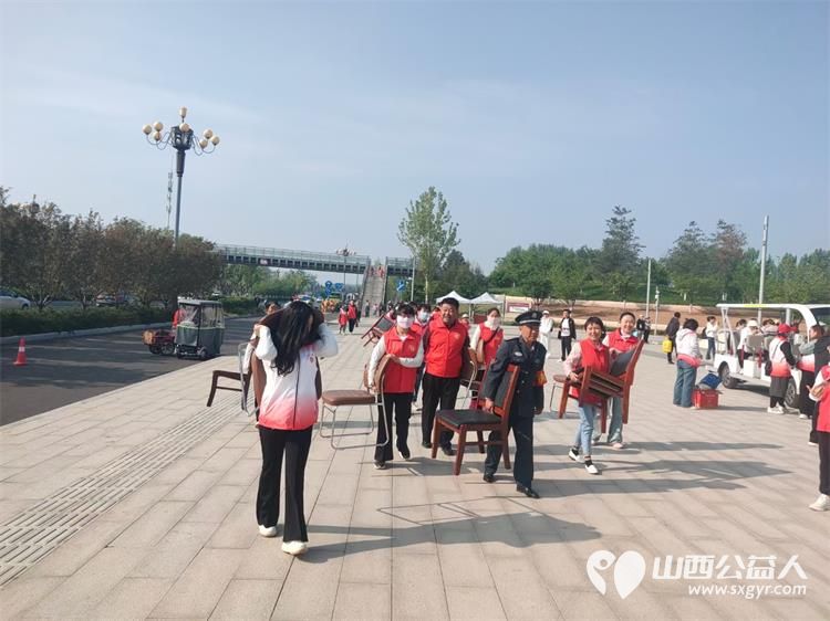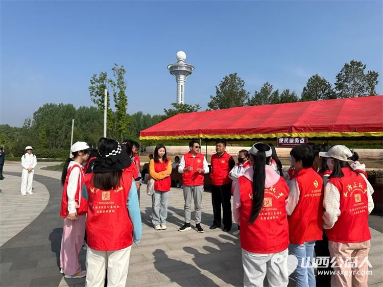 5.1日一大早,屯留会堂前人头涌动,会旗飘飘,前来集合的志愿者们准时如约而至,大家简单集合后,驱车前往湿地公园进行维持秩序,游玩指引等公益服务。