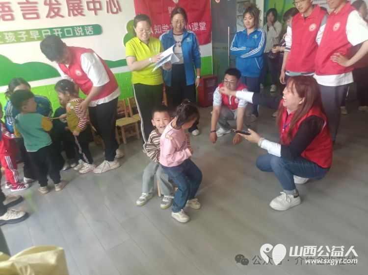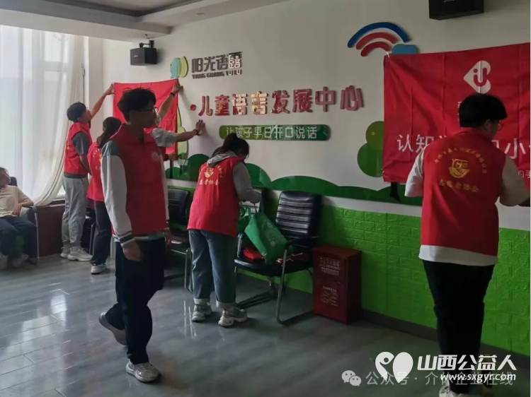 2024年4月30日下午14.30介休市北关街道彦博路社区志愿者协会志愿者前往介休市阳光语露 开展爱的分贝认知包发放志愿服务。