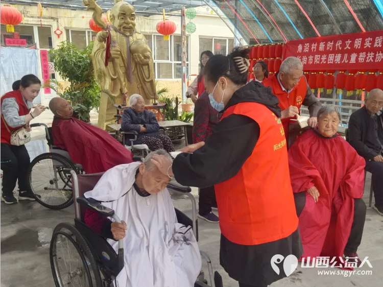 2024年5月4日青年节当天,长治市阳光困境儿童帮扶协会组织青年大学生志愿者和义工走进潞州区五马街道福乐敬老院开展志愿服务活动,为老人义务理发。