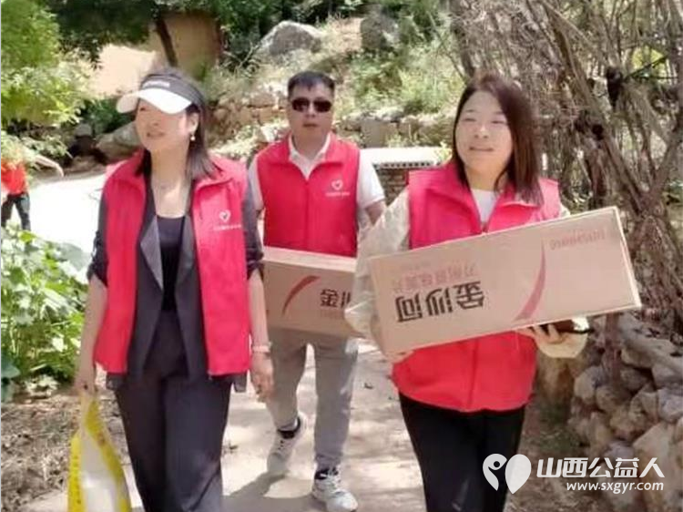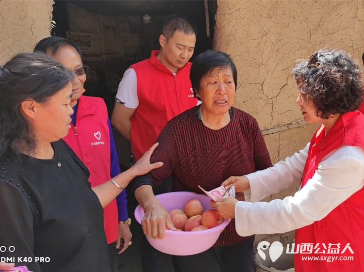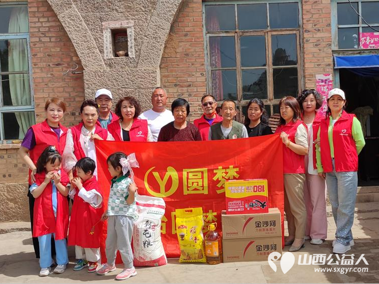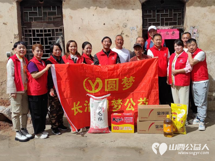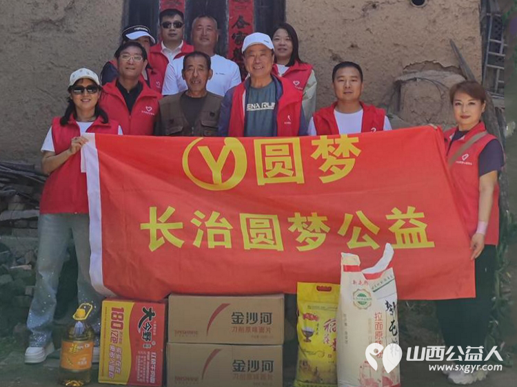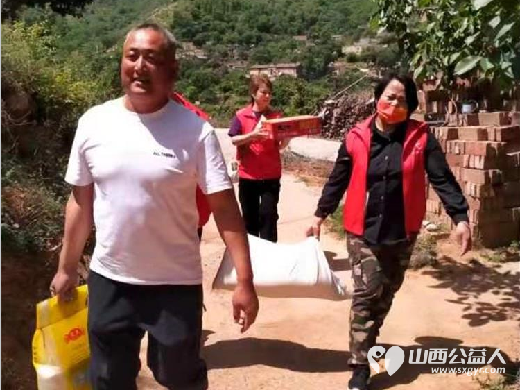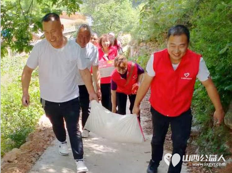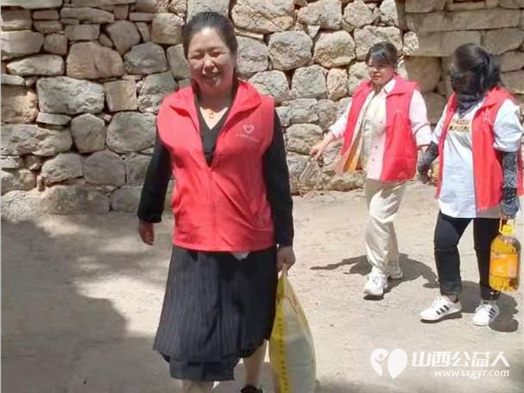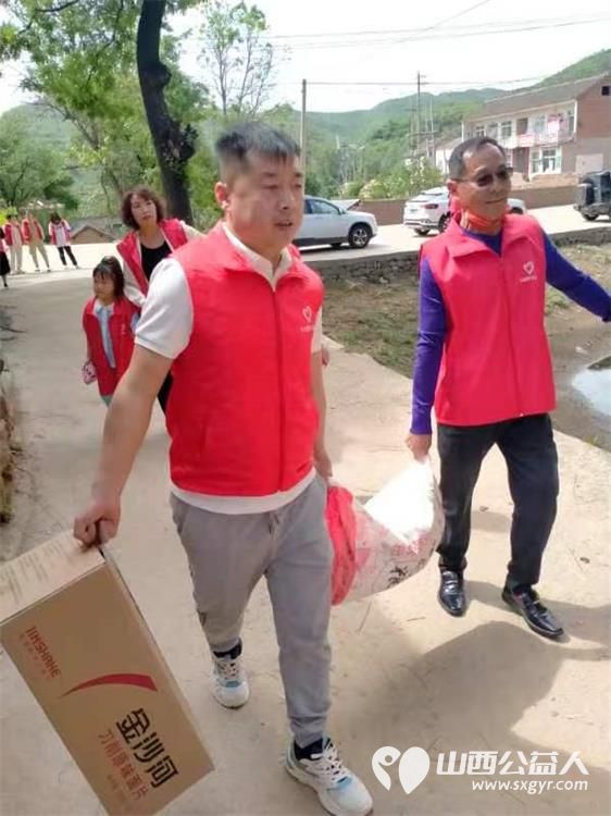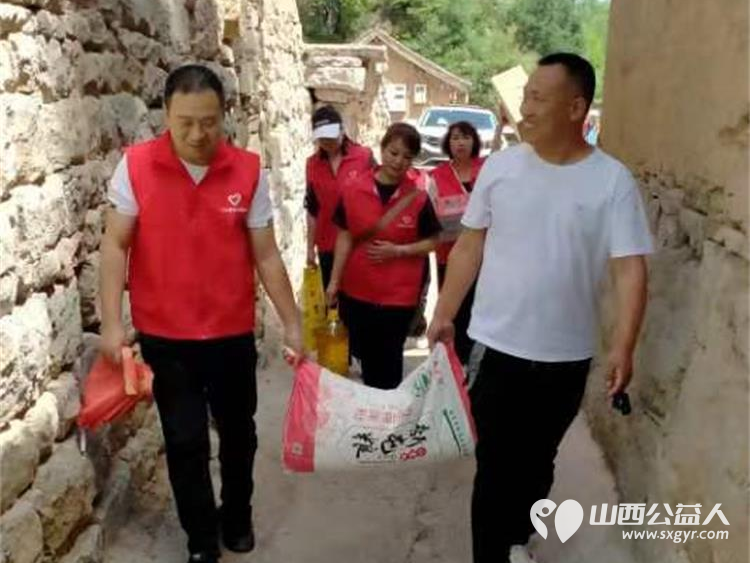 长治圆梦公益协会志愿者5月11日来到狄子峪村和东庄村对八户生活困难的家庭进行献爱心活动捐赠米面油