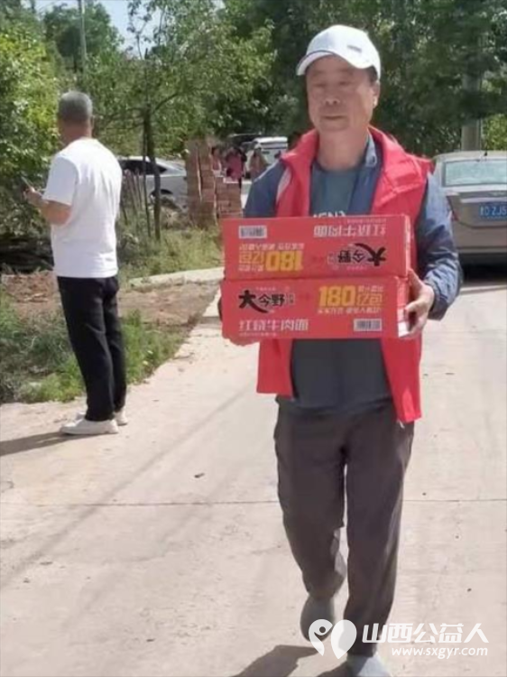 爱心人士捐面片8箱、稻花香大米8袋、大桶油8桶。