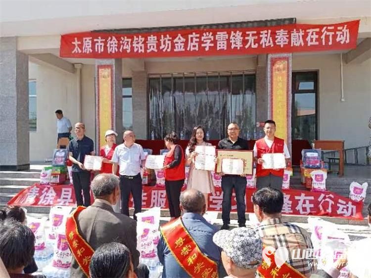 由清 徐县新时代文明实践中心、清徐县教科局、清徐县退役军人事务局、清徐县关工委、清徐县西谷乡人民政府、山西好人张小义、正能量爱心联盟等部的组织协调,太原徐沟名贵坊金店承办,郭小红、史风英、闫雪协办的《学习雷锋让爱回家在行动》捐赠活动在清徐县西谷乡中心幼)L园中心广场隆重举行。