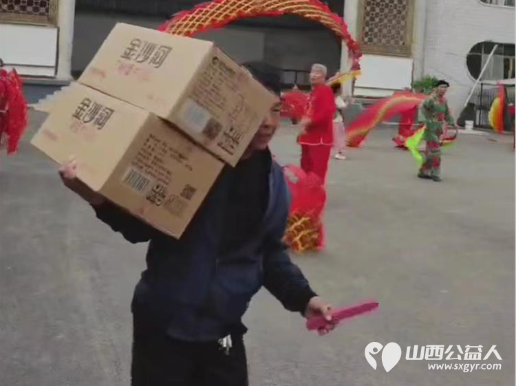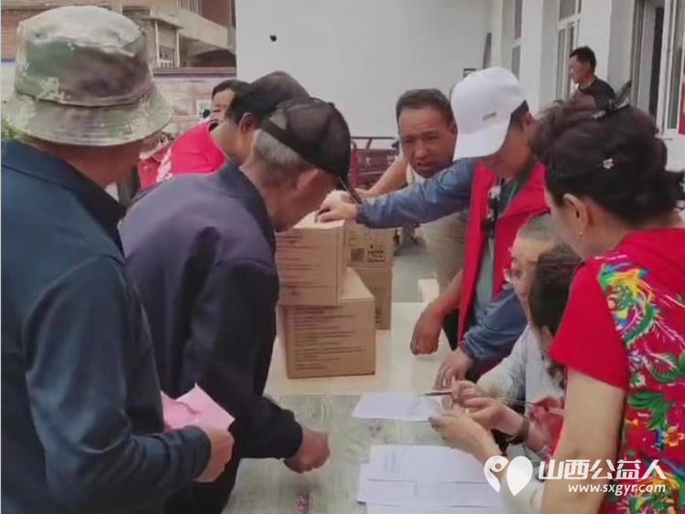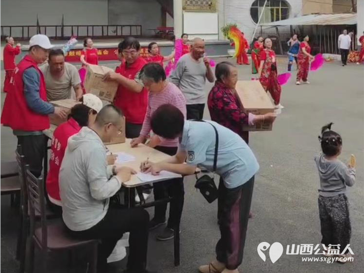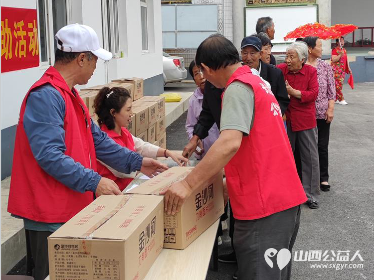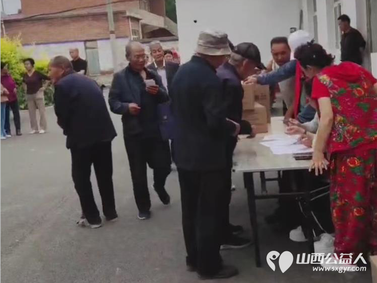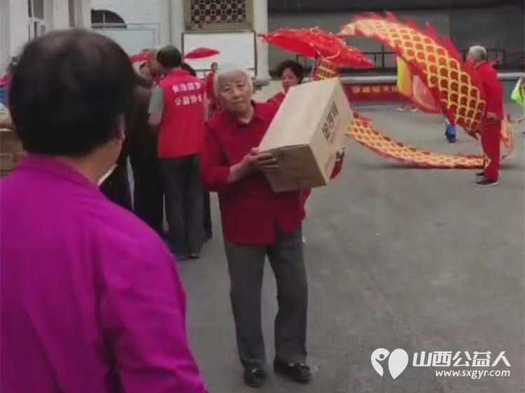 长治市圆梦公益协会走进欢掌底村开展关爱老人爱心捐助给村里70岁以上老人送去了金沙河面片