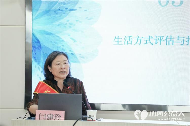 太原学花志愿服务中心百场公益走基层活动在阳曲县商贸新街社区举行闫建玲老师就糖尿病生活方式医学干预内容进行了巡讲