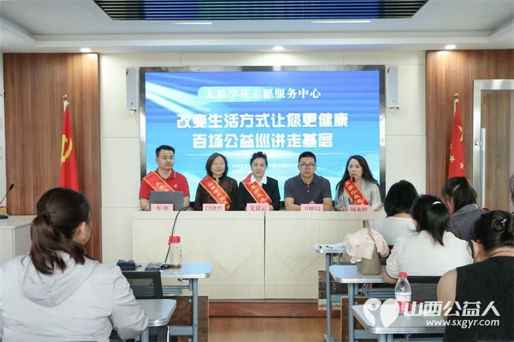 5月29日下午太原学花志愿服务中心改变生活方式让您更健康百场公益走基层活动在阳曲县商贸新街社区举行。