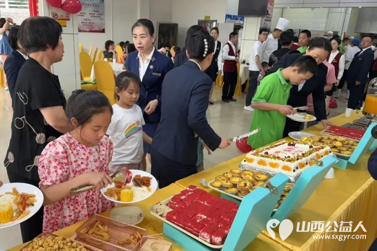 傍晚时分,晋祠宾馆为孩子们准备了一顿丰盛的晚餐。餐桌上摆满了美味佳肴和精致的点心。孩子们围坐在一起,共同分享着这份节日的喜悦和温馨。在轻松愉快的氛围中,孩子们畅所欲言、互相交流。他们分享了自己的故事和经历,也表达了对未来的憧憬和期望。