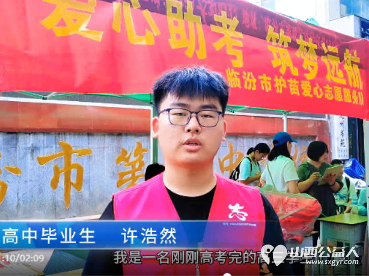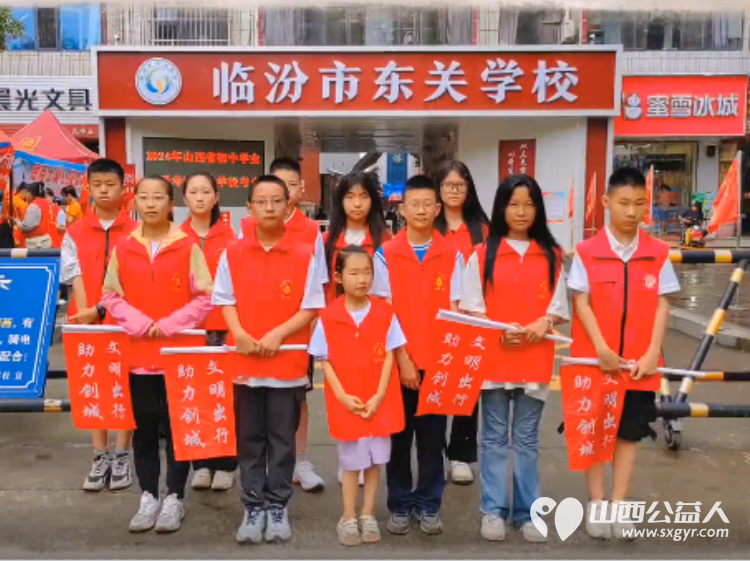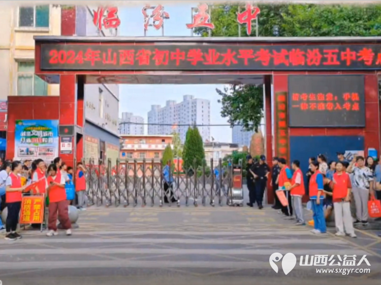 中考考场外的祝福与感动 临汾市护苗爱心志愿服务队的志愿者们到岗指引交通通行确保考场周边交通顺畅