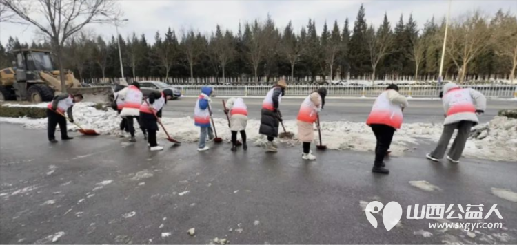 长治正能量公益协会颐龙湾社区志愿服务团队“铲雪除冰”为广大群众的出行安全保驾护航