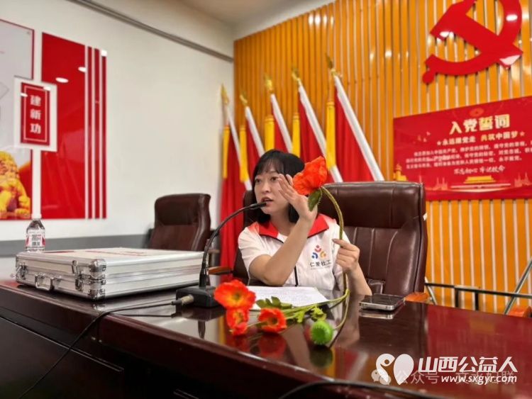 图为禁毒社工为大家发放宣传页展示毒品模具