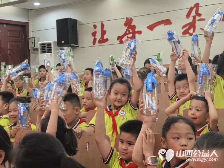而今,又一项暖心的活动——项目学校发放水杯仪式,在孩子们的欢声笑语中举行。