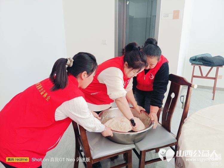 12月21日上午天寒地冻,志愿者们早早来到慈悠养老院,与养老院工作人员一起和面、拌饺子馅,忙碌了3个多小时,包出了一个个爱心饺子。