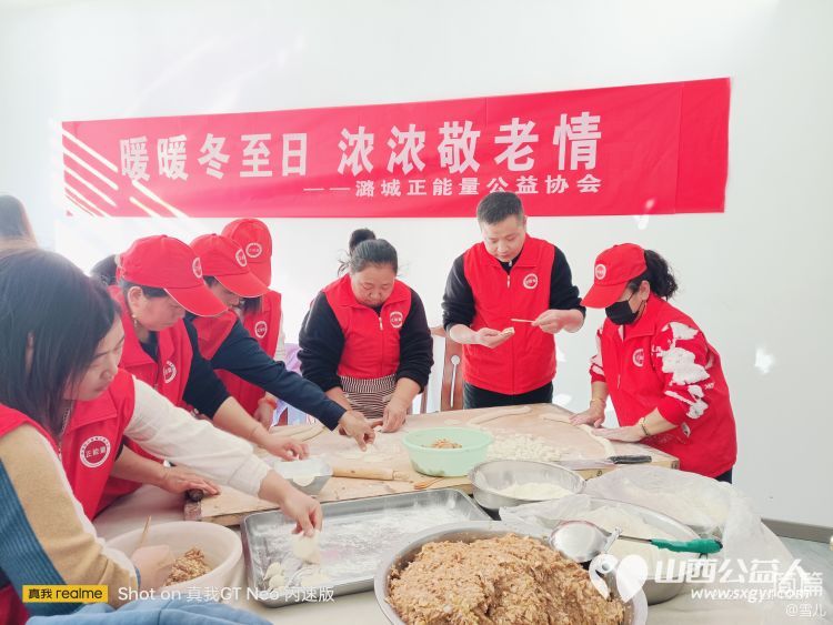 暖暖冬至日浓浓敬老情,潞城区正能量公益协会的志愿者来到慈悠养老院为年逾花甲的老人们包饺子陪他们过冬至