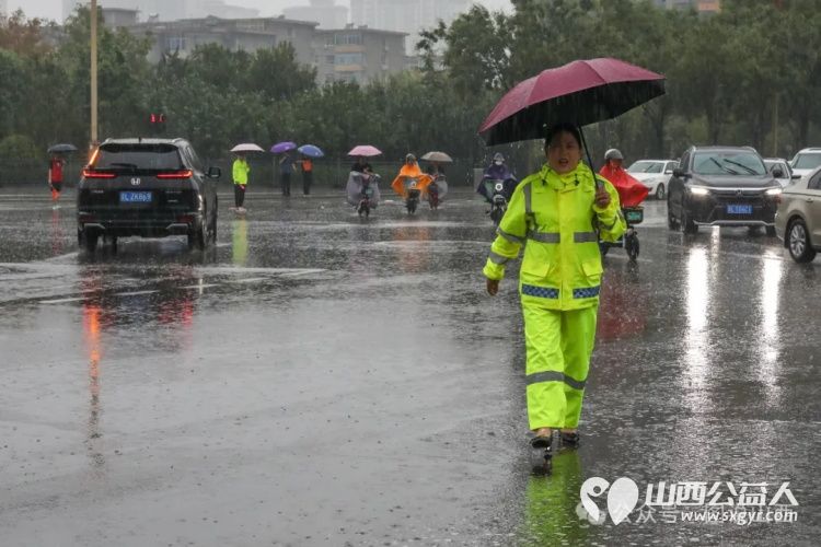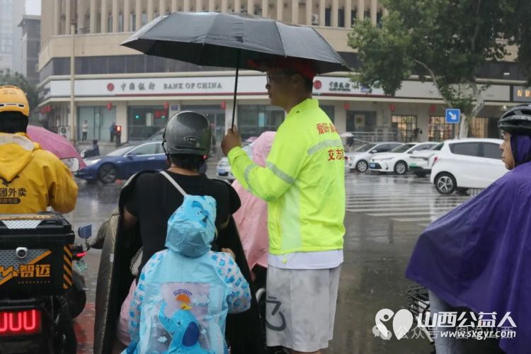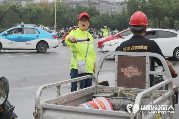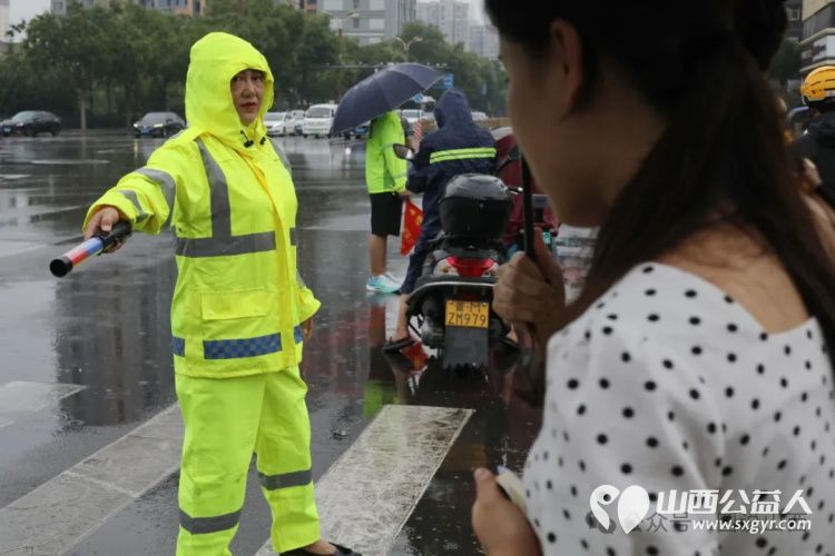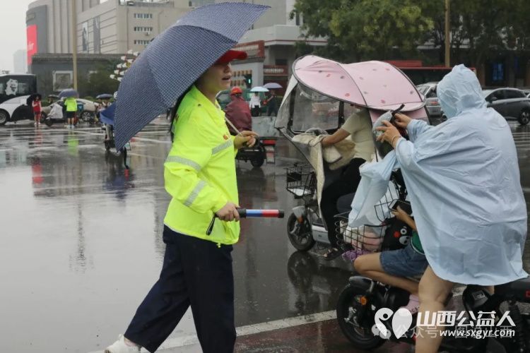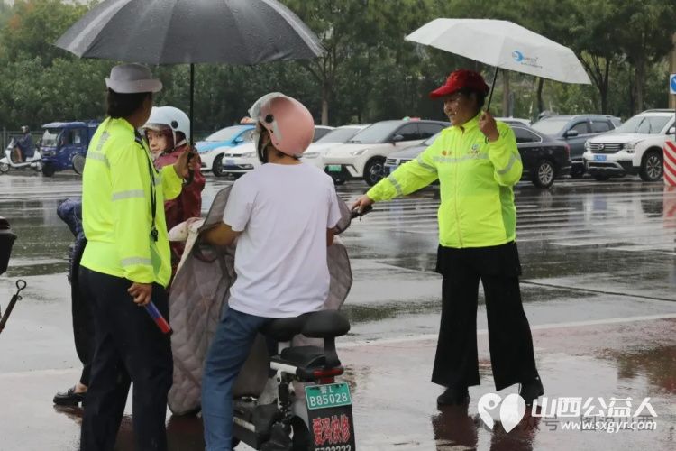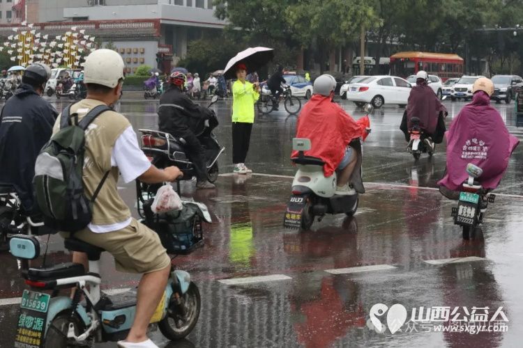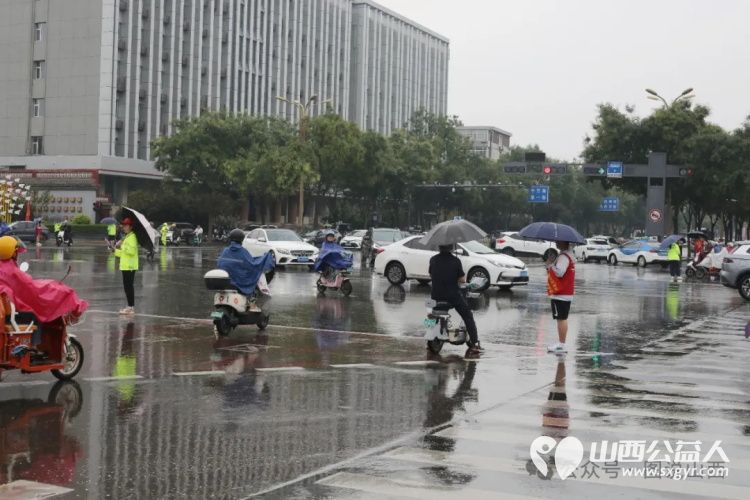 临汾市文明交通志愿者协会水厂先锋岗的志愿者们迎暴雨、战高温,第六周他们仍在坚守交通劝导工作