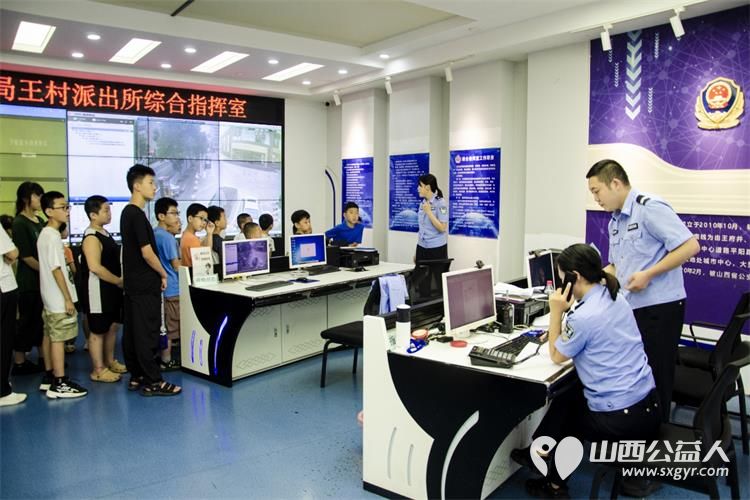 小店区营盘街道南内环街二社区来自15所小学的35名学生参观王村派出所日常工作环境体验警察工作