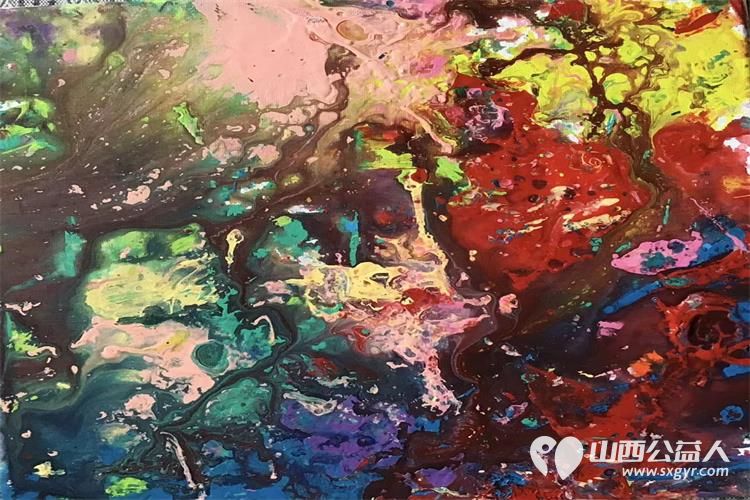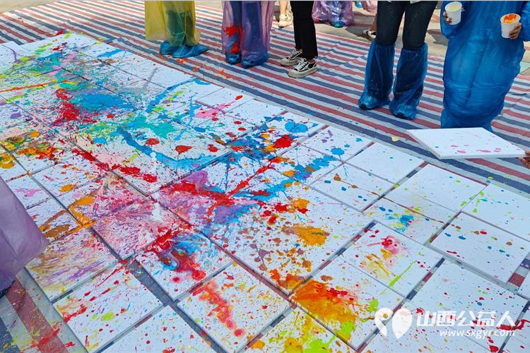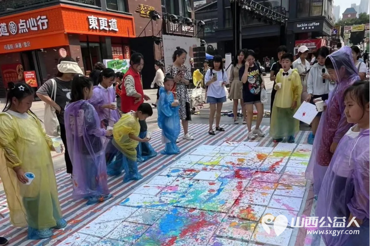太原市安健儿公益服务中心孤独症孩子们在泰享里举办大型泼彩画艺术活动的成果