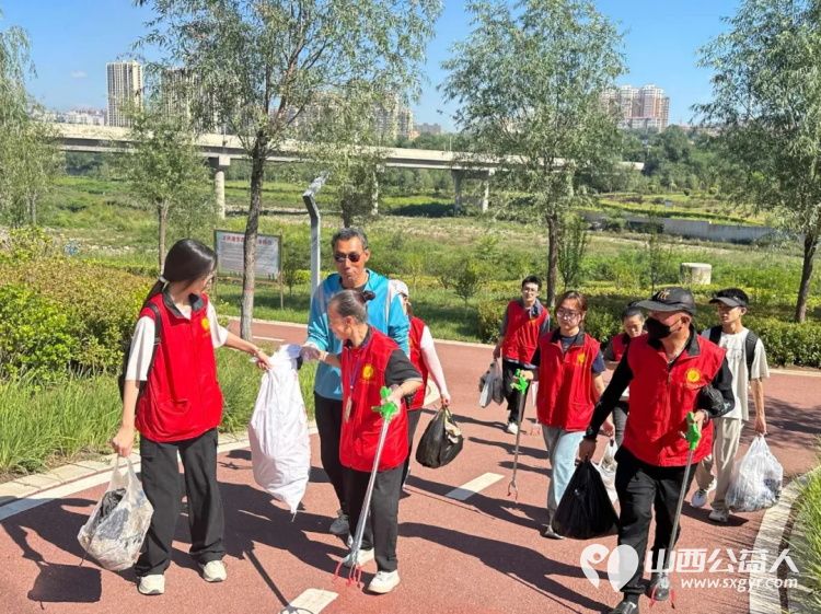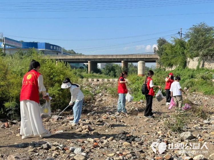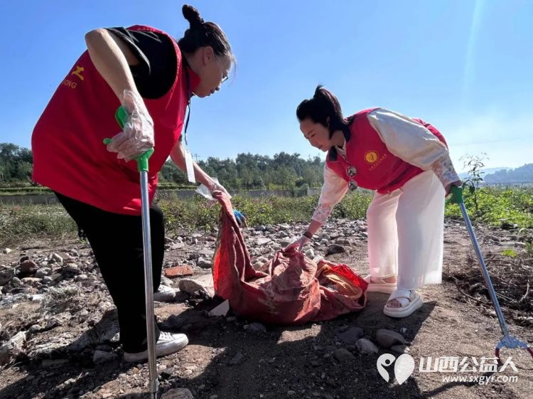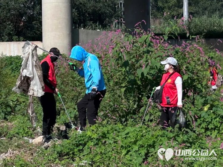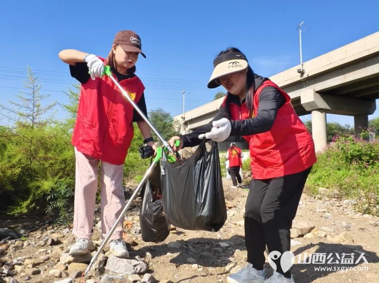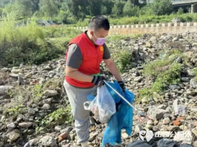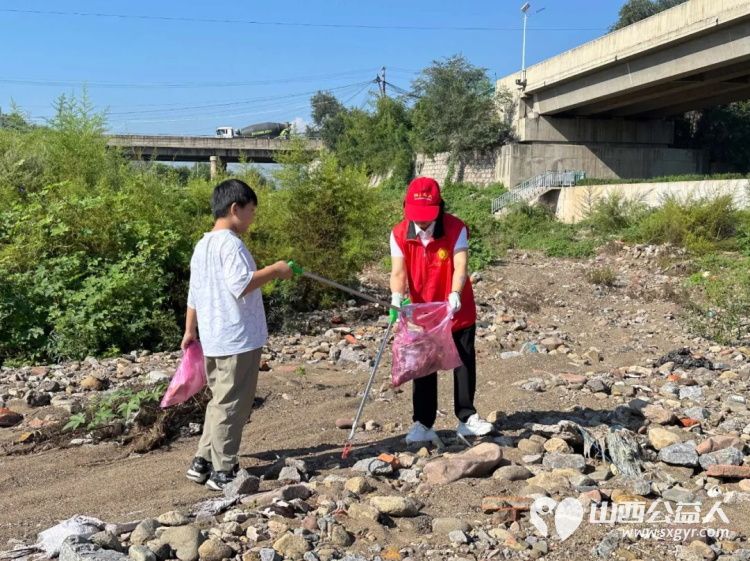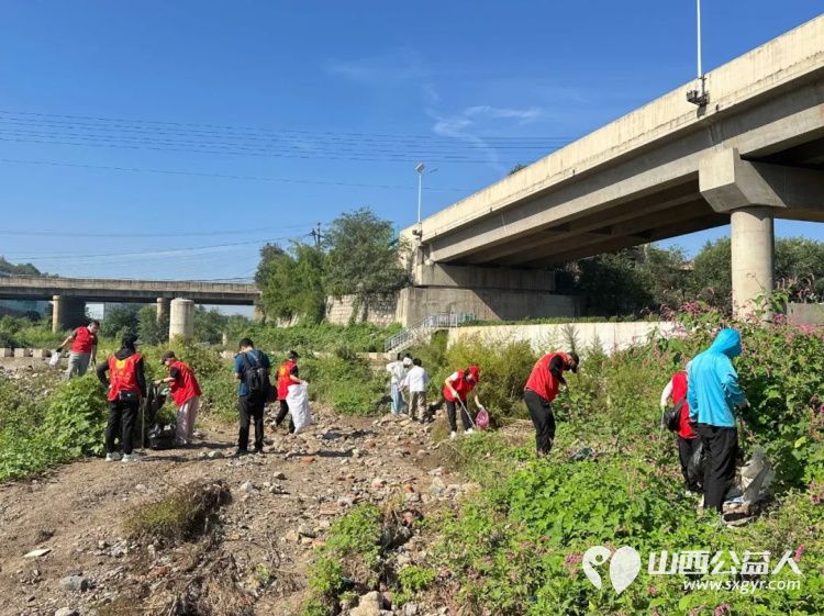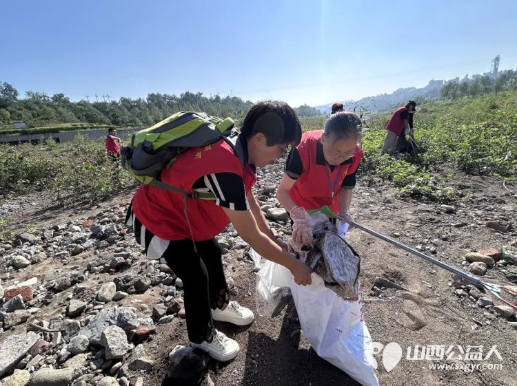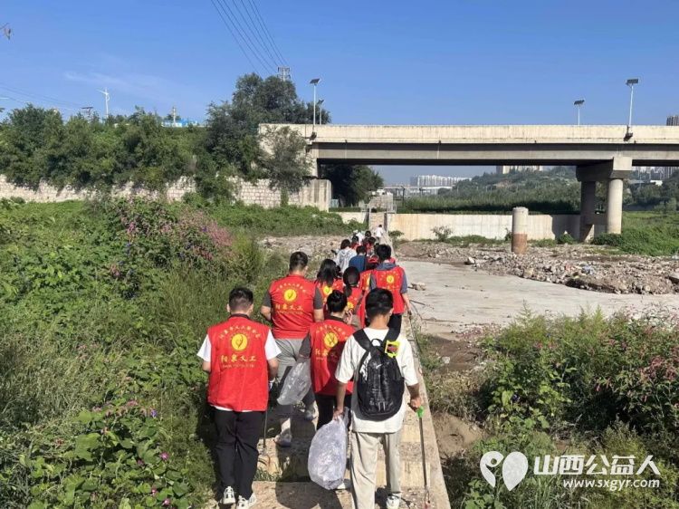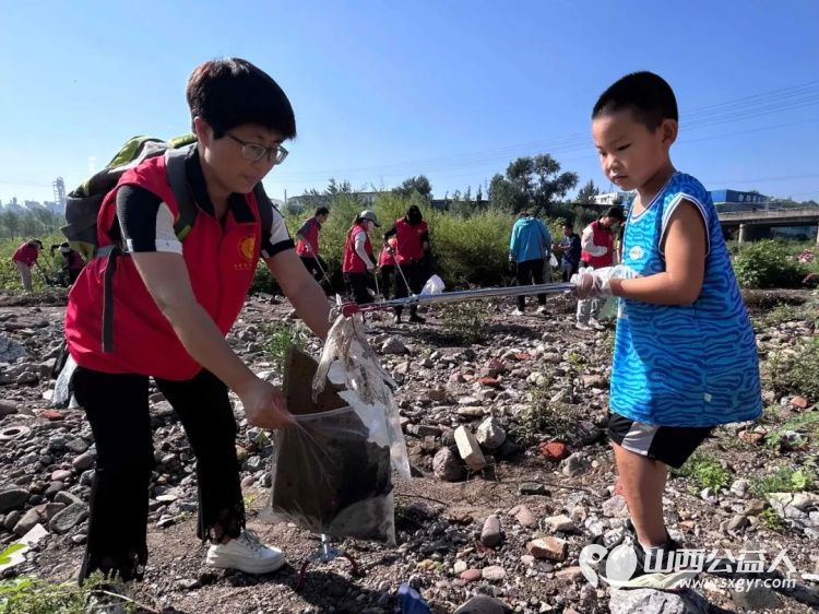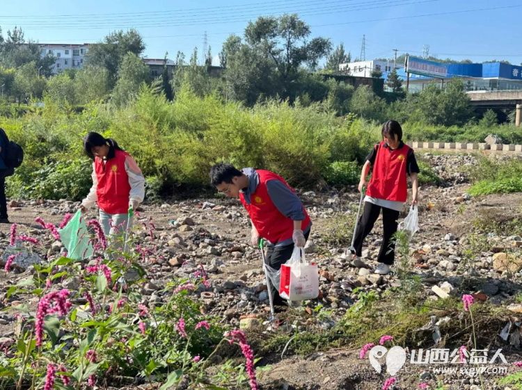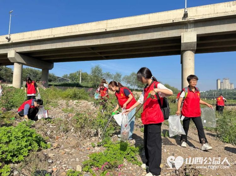 保护母亲河 阳泉市义工联合会组织义工巡河净滩活动在白羊墅湿地公园开展
