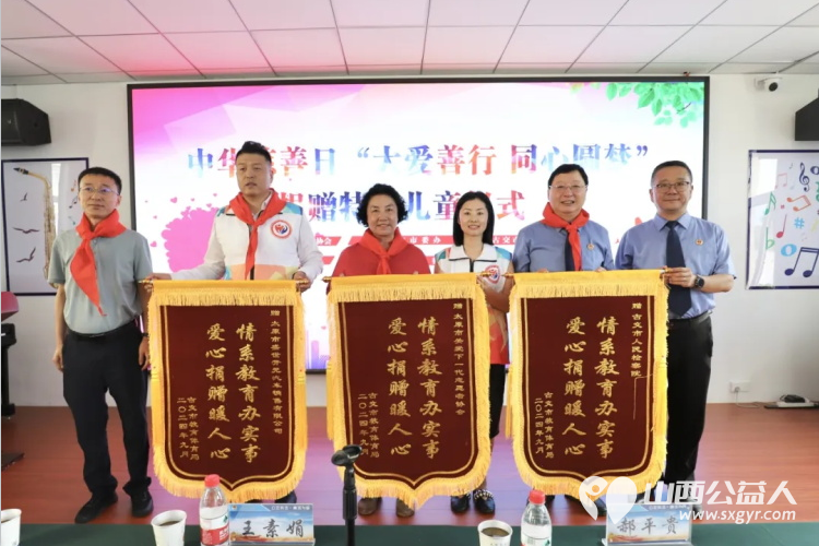 古交市教育体育局向各爱心单位赠送了锦旗,感谢大家对教育事业、对困难儿童的帮助和捐赠。
