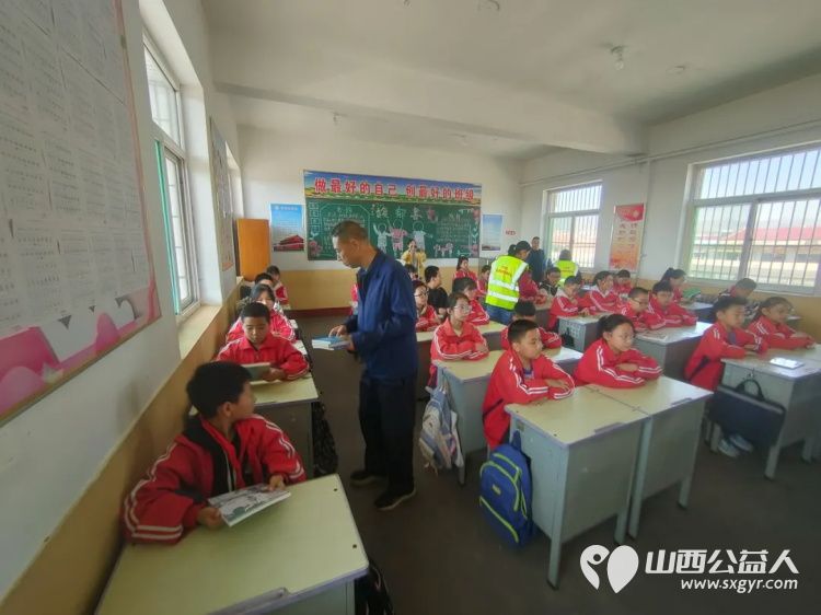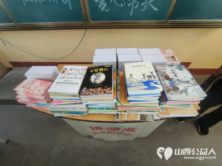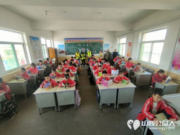 文水县爱心帮扶志愿者团队志愿者来到岳村小学,为学校捐赠2000元图书和童伴艺术画画材料