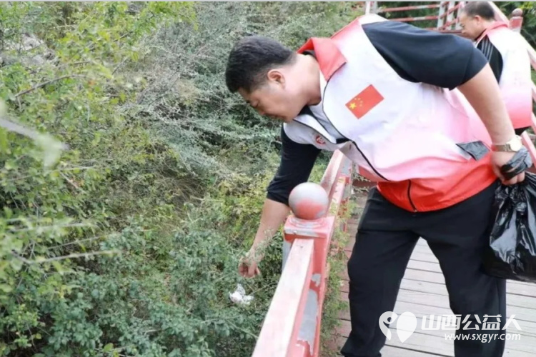 仪式结束后,长治正能量公益协会(长治技师学院青年志愿者服务队)立即投入到了“爱我家乡——护林环保登山行”环保志愿活动中。学院党员代表、教工团员代表、工会会员代表等志愿者们统一乘车前往长治市老顶山森林公园,开启了护林环保登山行公益志愿行动。