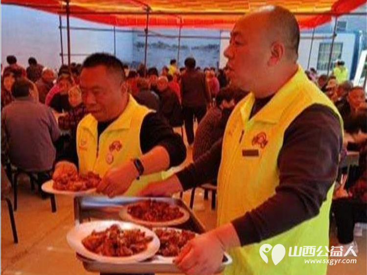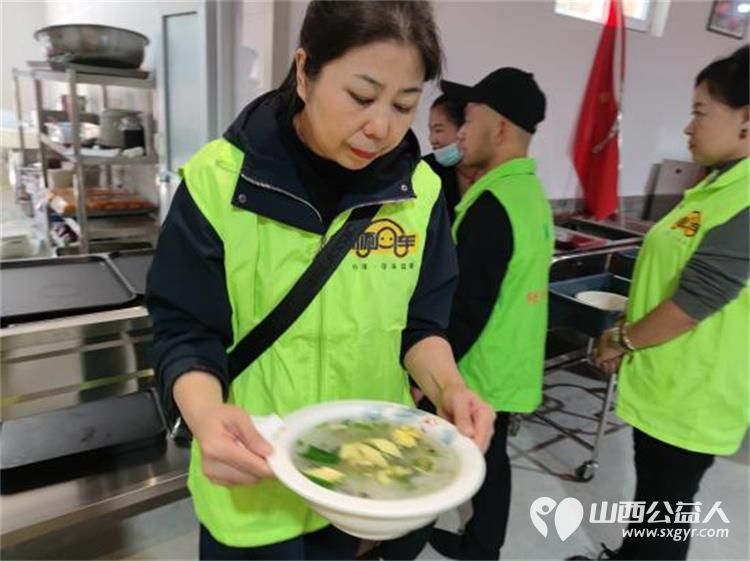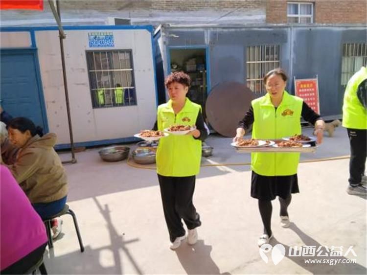 随后,在水北村两委水北村大食堂为老人们精心准备的聚餐活动中,志愿者们热情地为老年人端盘上菜。他们小心翼翼地将一道道美味佳肴摆放在老人们面前,用微笑和关怀传递着温暖。老人们围坐在一起品尝着美食,感受着这份浓浓的关爱。席间欢声笑语不断,温馨的氛围在整个空间弥漫。