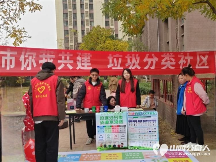 11月9日中心成员团体晋中师专高等专科学校青年志愿者服务队,来到长期对接的榆次区纬街道第五社区,联合社区工作人员,通过现场解答、互动游戏、发放宣传册等方式,开展垃圾分类志愿服务活动。
