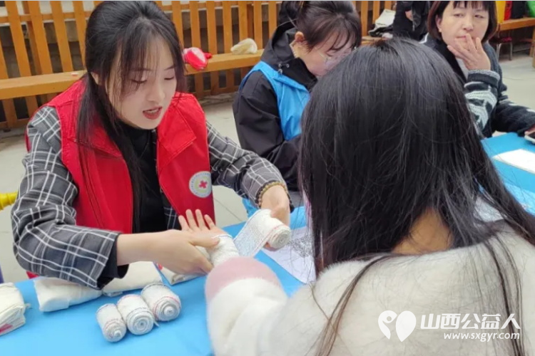 11月11日中心成员团体山西中医药大学红十字协会、山西职业技术学院机械工程系青年志愿服务协会,在长期对接的榆次区纺配社区社区,联合社区工作人员,为社区居民开展外伤包扎、心肺复苏等应急救护志愿服务,同时,开展关爱拉人志愿服务活动。