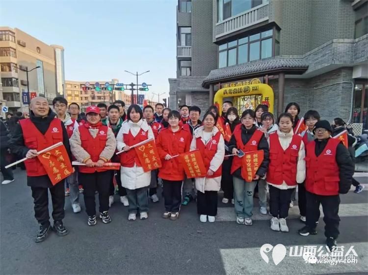 临汾贡院街开街、跨年中的文明交通志愿者。