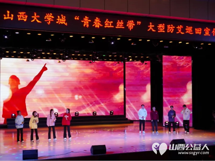 同时现场通过防艾宣誓、佩戴红丝带、节目表演、现场宣传等方式,宣传和倡导广大青年、大学生要积极参与防治知识的宣传教育活动, 不断增强自我保护意识和能力,成为艾滋病防治知识的传播者,成为遏制其蔓延的有生力量。
