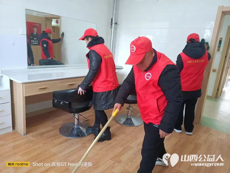 有的志愿者认真地清扫着地面的灰尘,每一个角落都不放过。扫帚与地面摩擦发出的沙沙声,仿佛是一首有节奏的劳动之歌。在房间里,志愿者们轻柔地整理着床铺,将物品摆放得整整齐齐。他们仔细地擦拭着家具,去除岁月留下的痕迹。卫生间也在志愿者们的努力下变得焕然一新,瓷砖闪烁着洁净的光芒。