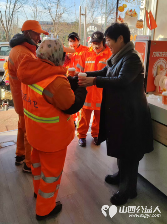 2024年1月5日上午,我看到环卫工人在外面打扫,寒冷的冬天,我把面包和热乎乎的豆浆免费送给了环卫工人手中,让她们感觉到了温暖。