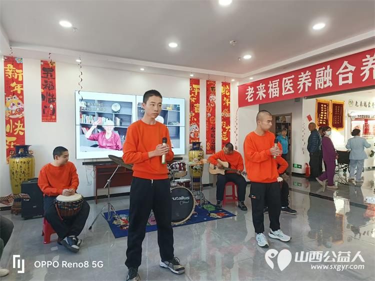 太原市灵星社区康复中心心青年乐队来到养老院慰问老人给老人们演出节目