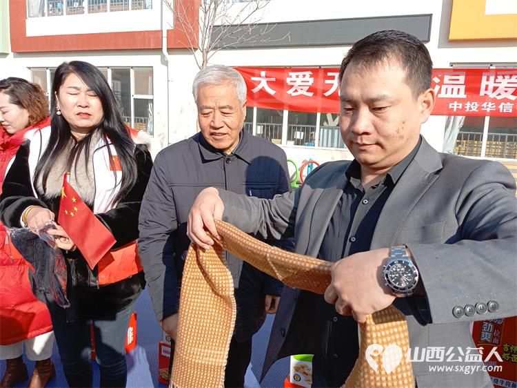 在春节来临之际, 在清徐县新时代文明实践中心、清徐县关工委、清徐县徐沟镇宣传委员、副镇长仵卫东、山西好人张小义、清徐县阳光益佳爱心服务队、正能量爱心联盟等部门的组织协调下,中投华信山西分公司《迎新年慰问千名单亲儿童在行动》捐赠活动在清徐县徐沟实验中心小学校隆重举行。