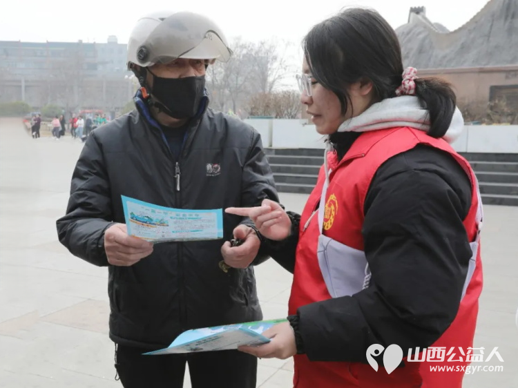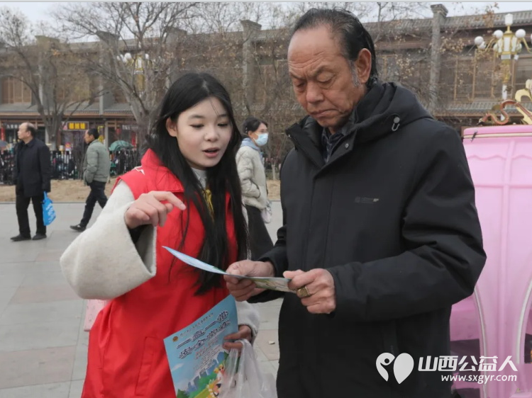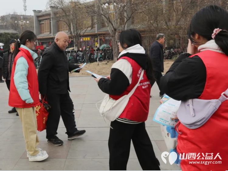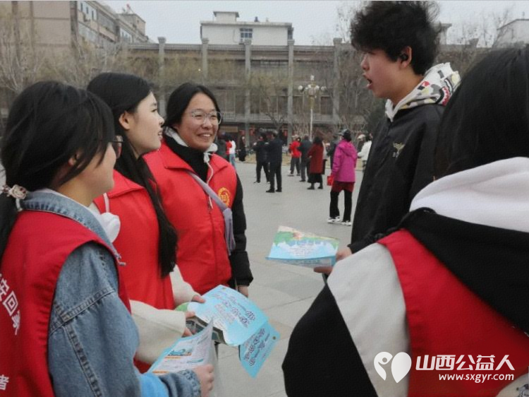 临汾市文明交通志愿者协会组织百余名志愿者走上街头和鼓楼广场开展文明交通安全宣传活动