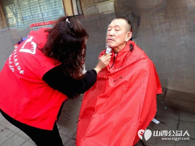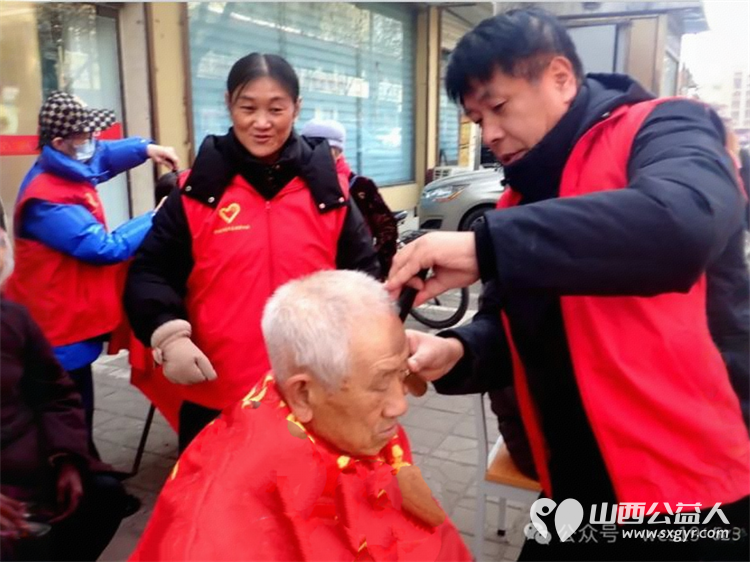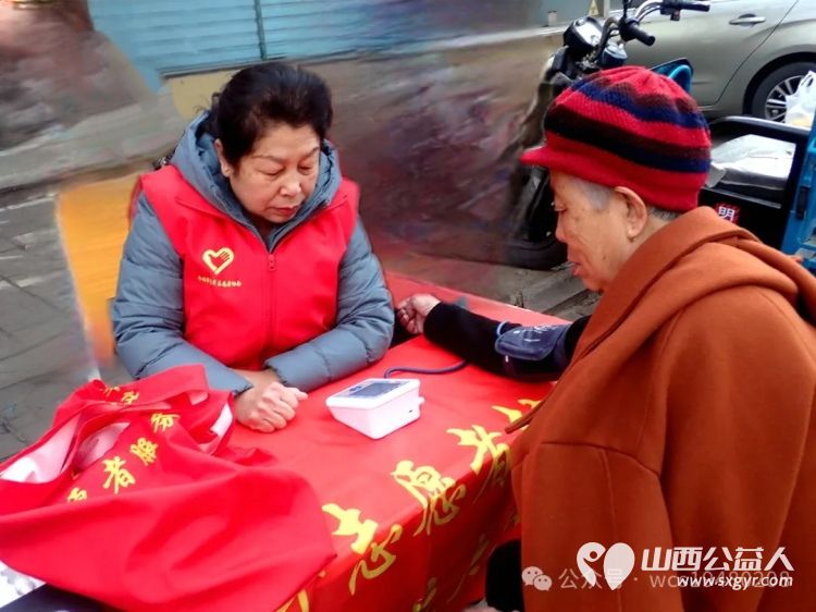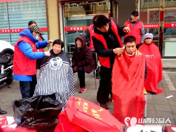 介休市青年志愿者协会义工联盟独立大队到花园社区理发针灸量血压发放红手环活动