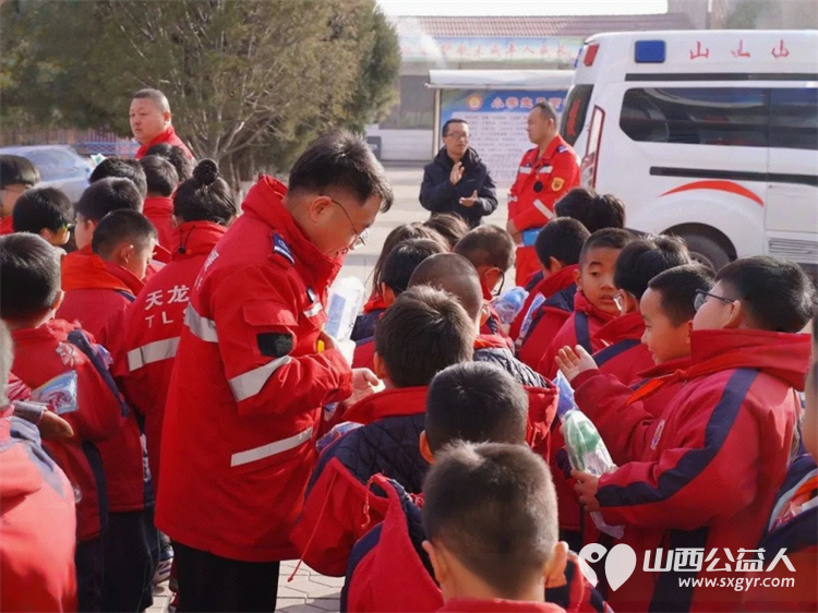 值得一提的是,本次发放仅是项目的阶段性成果。后续,我们还将为其余5所项目校的孩子们发放水杯,确保每一个孩子都能拥有这份贴心关怀。文水县天龙救援队的队员们全程积极参与,为孩子们发放水杯,耐心讲解饮水安全的重要性,让孩子们在轻松氛围中收获实用知识。