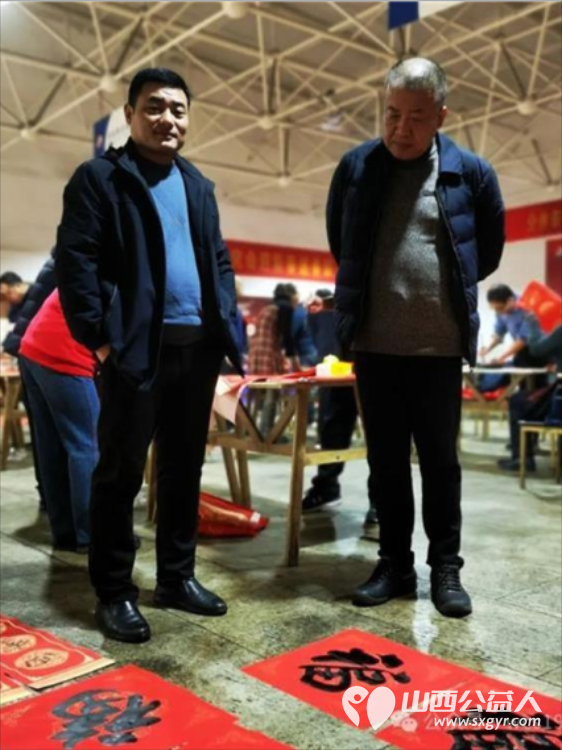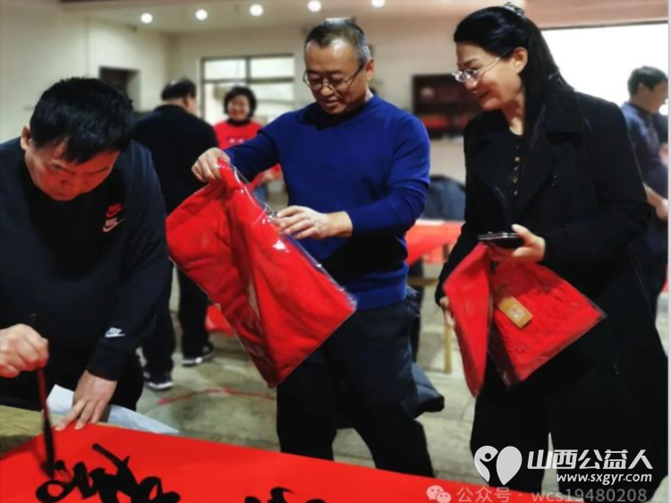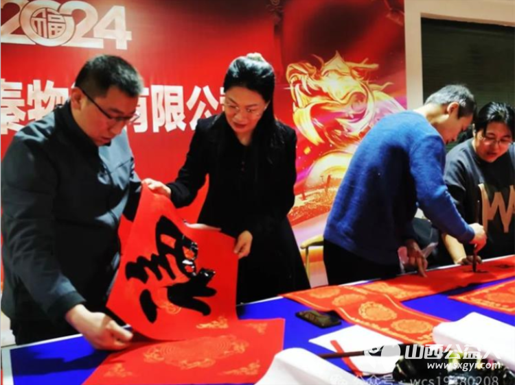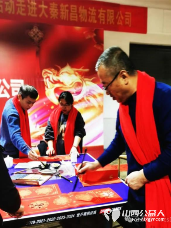 元月16日介休市书法家协会(虹霁寺文化研究会)举办的万福迎春公益话动暨民进介休支部举办的全国 春联万家--向新而行 活动,共同走进大秦新昌物流有限公司,给一线职工送温暖送春联活动。