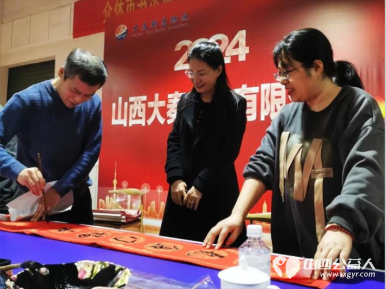 介休市书法家协会携手民进介休支部共同走进大秦新昌物流有限公司,给一线职工送温暖送春联活动
