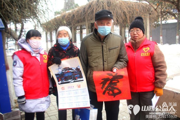 红色志愿者们给23名空巢老人每人送了一副春联和分享忻州著名李斌杰剪纸大师的年历,每人一张,有3个行动不便的老人周贵明94岁和岳桃梅87岁和郭招弟92岁空巢老人,李巧风空巢老人没有出来,送到家里,有的男的空巢老人领上春联和年历没来的及照像匆匆走了,空巢老人有,李润娥75岁,王巧珍85岁,焦美英82岁,赵计珍86岁,巩未芳86岁,杨金祥(脑梗)86岁,李巧风75岁,陈林英76岁,杨树兰90岁,焦新平,75岁,(患有严重关节炎)岳桃梅87岁,王敏秀75岁,张改云86岁,张翠芳88岁,武常珍86岁,赵翠珍75岁,赵志贵85岁(有高血压)张志庭75岁,李梅祥76岁,粱虎虎85岁,韩七村76岁,周贵明94岁,郭招弟92岁,祝愿空巢老人在社会的各届关爱下,健康长寿,欢欢喜喜过大年。