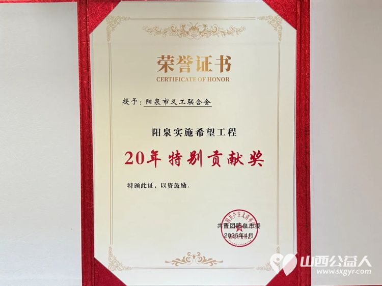 这一荣誉不仅是对阳泉义工联20年来积极投身希望工程、为困境青少年成长成才无私奉献的高度认可,更是对全体义工的巨大鼓舞