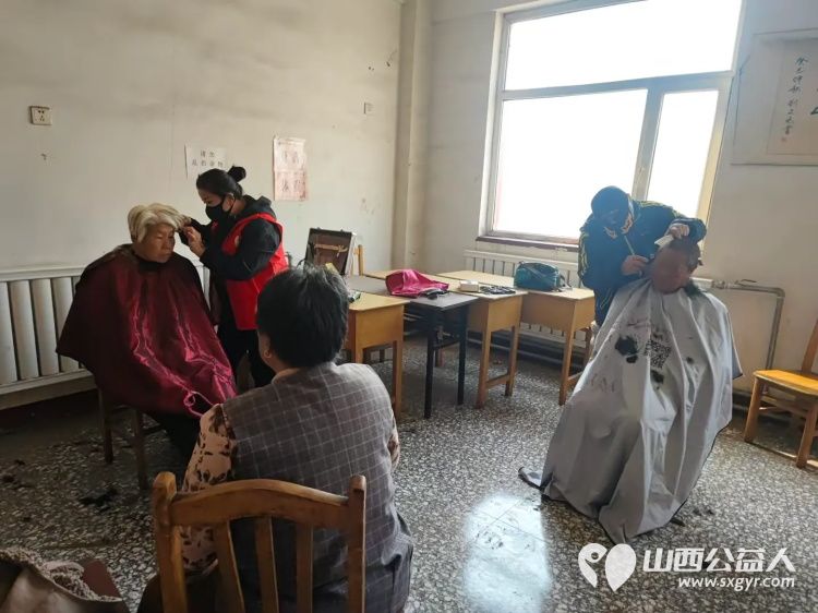志愿者来到洪山镇西湛泉村村委。现场理发师们手指动作流畅而自如,每一个细节都被处理的无可挑剔,让老人们焕然一新。