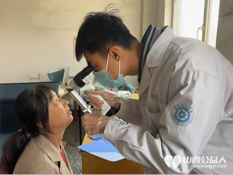 康明眼科的医护人员认真为老人们视力检查、裂隙灯检查、量血压等项目……
