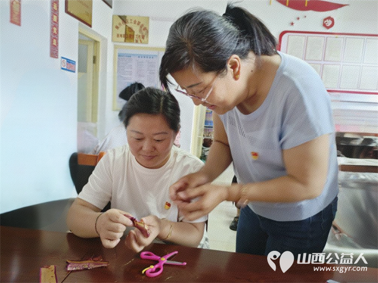 晋中市太谷区白塔区振兴社区组织居民开展“我在文明实践中心过端午”主题活动共同完成五彩绳编织和香囊制作