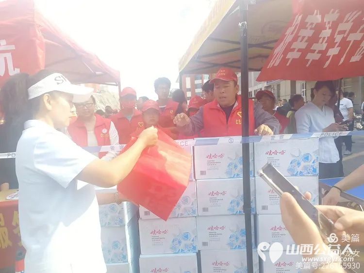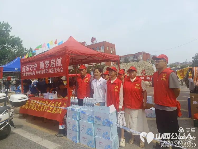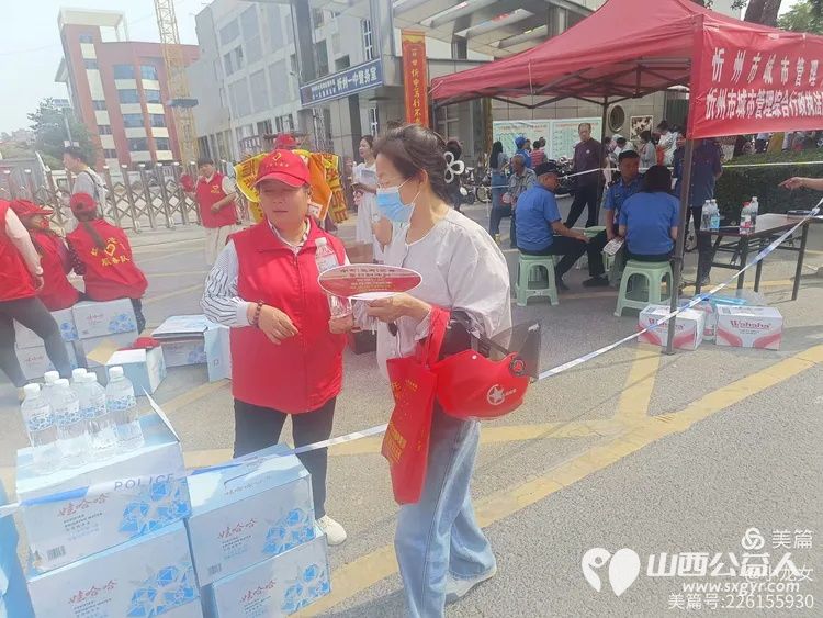 大美忻州志愿服务队携手忻州红色志愿者共同为忻州市一中高考点爱心送水助力2025年高考志愿活动