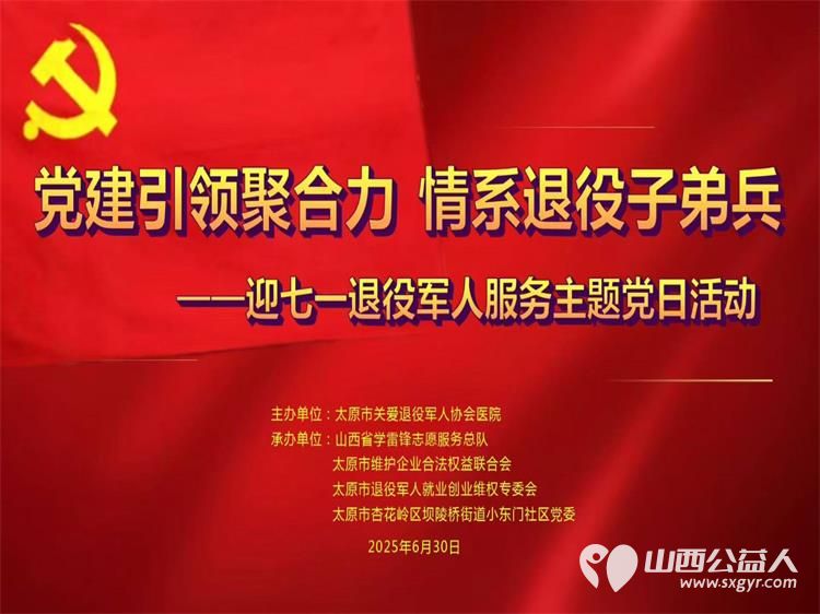 山西省学雷锋志愿服务总队、太原市维护企业合法权益联合会等五家单位携手,党员、退役军人代表、志愿者们齐聚一堂,以实际行动传递对退役子弟兵的关怀,凝聚党建力量,共迎党的生日!