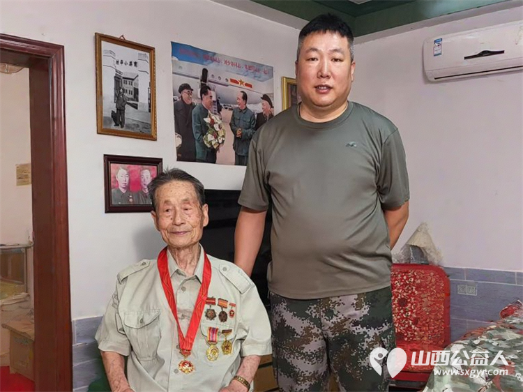 山西省道德模范、最美退役军人在山西(太原)红军后代联谊会和育英学校老校友联谊会老同志陪同下看望了94岁的抗美援朝老兵老党员李同春同志